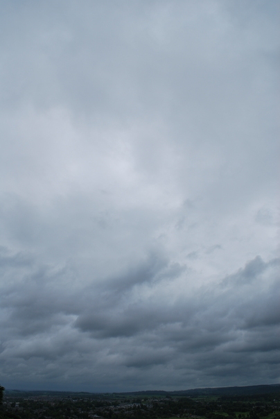 The sky above the mountain range was filled with clouds and had very little sunlight visible.