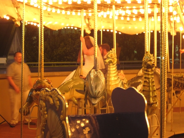 The wedding was held in downtown Houston at the Aquarium. It was a really cool setup with a beautiful view of the city, and we were even able to ride the Ferris wheel outside.