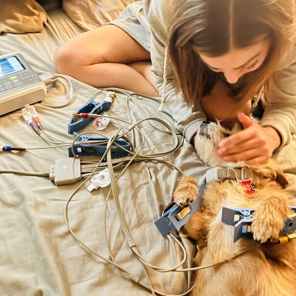 So we did some research and figured out specifically which leads are used for dogs and where they're specifically attached. While we got some basic readings from the machine, we couldn't get a consistent heart rhythm on Atti and figured that it had to do with her thick fur.