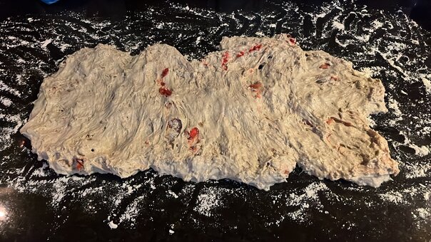I made two different versions. One where I mixed everything into the proofing dough and another where I only mixed half into the proofing dough and then the other half into a laminating process after the proofing.
