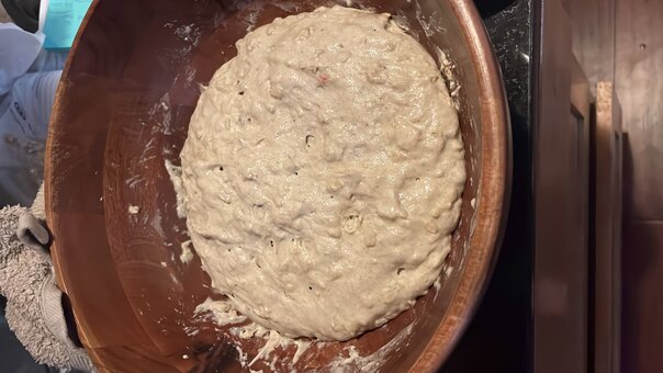 ![]() Strawberry Banana Oatmeal Sourdough Austin, TX This was a concoction that I had the idea for. While it's difficult to put fresh berries inside of sourdough (given the additional water content and the 500 degree oven involved), it occurred to me that I could probably get freeze-dried fruits and berries, mix them into the dough, and then the steam and heat would rehydrate them to make them seem fresh. I made two different versions. One where I mixed everything into the proofing dough and another where I only mixed half into the proofing dough and then the other half into a laminating process after the proofing. Both came out pretty amazingly, but for the sake of simplicity, I'd suggest just mixing them into the original proofing dough. It seemed to work just as well. |