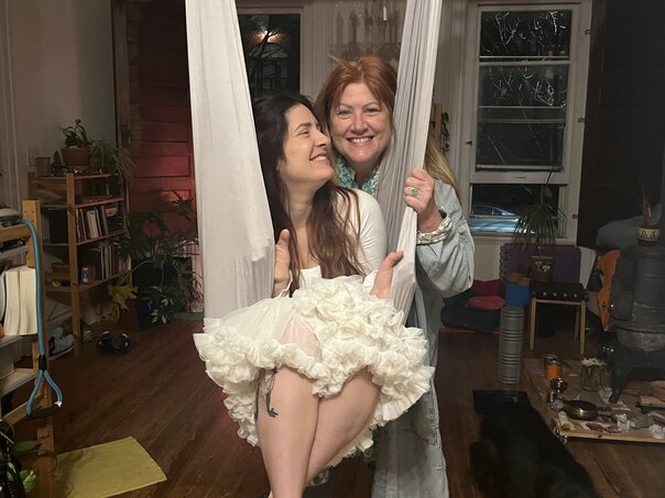 Suzi visited us on her way back from the Carolinas one evening and Jordan wanted to get a cute photo of the two of them using the living room swing.