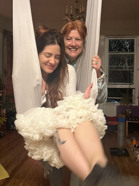 Suzi visited us on her way back from the Carolinas one evening and Jordan wanted to get a cute photo of the two of them using the living room swing.