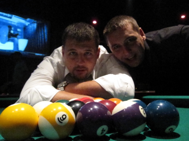 I think the highlight of my evening was my younger cousin, Michael, trying to pick up one of the giant beer cylinders only to have it tip over all over one of the pool tables. That is definitely the sort of thing that makes for a fun corporate-bar outing!