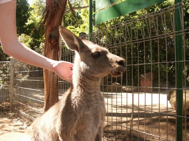 We first went around the city a bit and then got to check out the Olympic Stadium. Afterwards, we went to a wildlife refuge and got to see koala bears, kangaroos, and various other native Australian wildlife. Next we visited the three sisters park (a giant rock structure out in the bush) before ending with some aboriginal music and learning how to properly throw boomerangs.