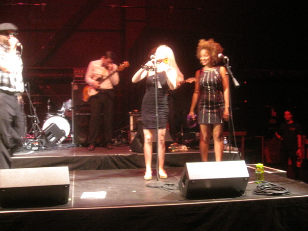 The woman with the long blond hair and tight black dress is the main singer at the moment the photo was taken.