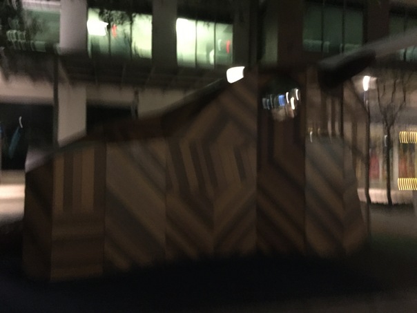 Even though the photograph is blurry it is possible to form an impression of the multi-colored wood, artistic design.