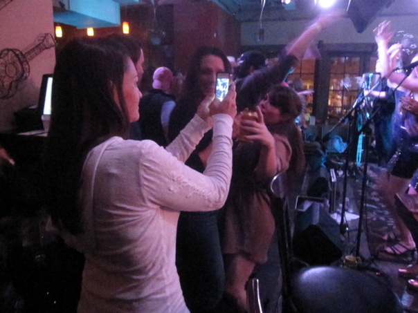 This is a photo of people at a concert taking pictures. |