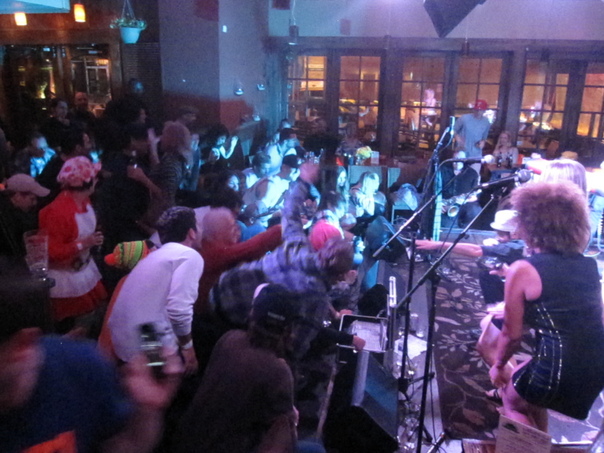This is a photo of a group of people in a public setting . |
