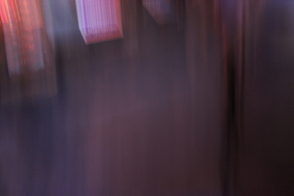 The shiny floor of a blurry indoor space with red tones.