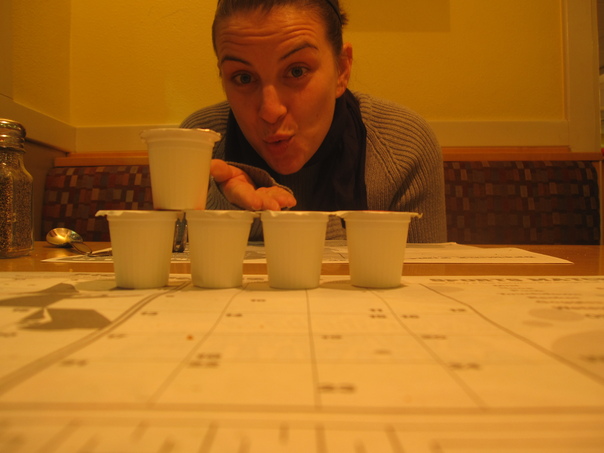 We drove pretty much straight through to Ft. Stockton where we stopped at the IHOP for some dinner. It was a pretty awful dinner, but we passed the time by making a little stop-action video at the table.