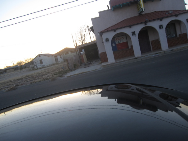 We drove pretty much straight through to Ft. Stockton where we stopped at the IHOP for some dinner. It was a pretty awful dinner, but we passed the time by making a little stop-action video at the table.