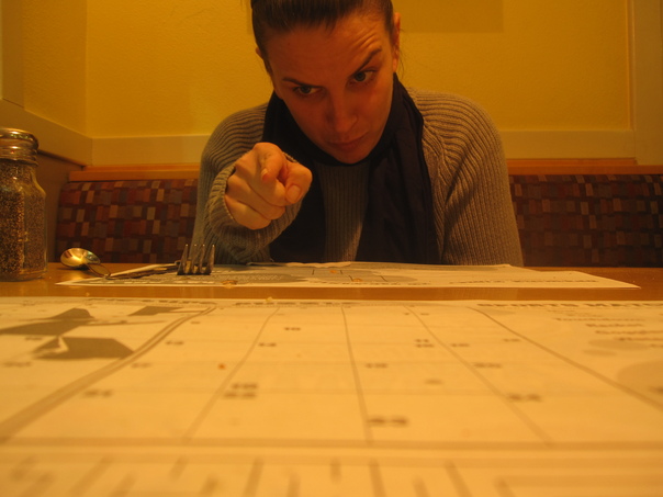 We drove pretty much straight through to Ft. Stockton where we stopped at the IHOP for some dinner. It was a pretty awful dinner, but we passed the time by making a little stop-action video at the table.
