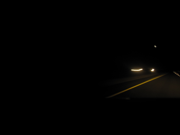 Unidentified luminance breaks the quite darkness beyond the highway.