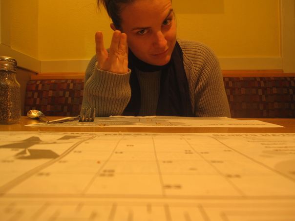 We drove pretty much straight through to Ft. Stockton where we stopped at the IHOP for some dinner. It was a pretty awful dinner, but we passed the time by making a little stop-action video at the table.