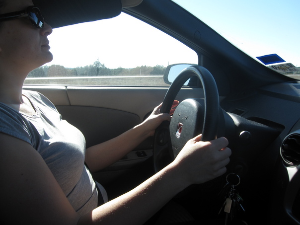 IT IS A PHOTO OF A ONE PERSON SITTING IN A CAR