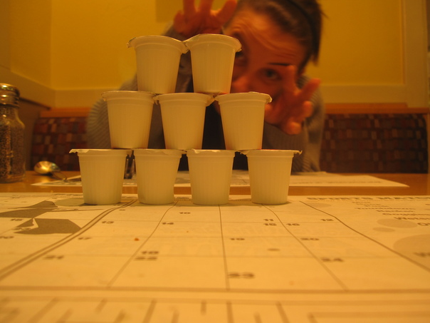 We drove pretty much straight through to Ft. Stockton where we stopped at the IHOP for some dinner. It was a pretty awful dinner, but we passed the time by making a little stop-action video at the table.