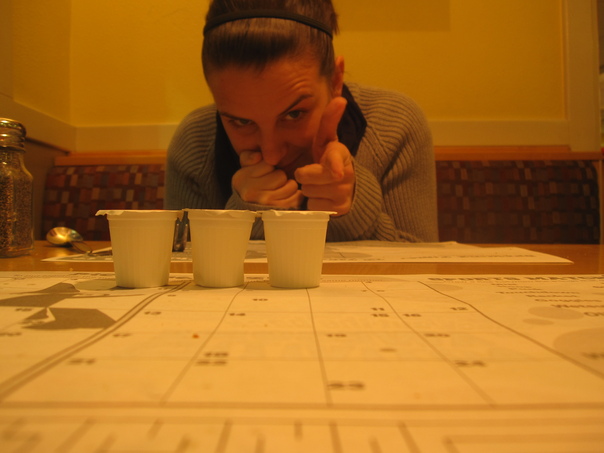 We drove pretty much straight through to Ft. Stockton where we stopped at the IHOP for some dinner. It was a pretty awful dinner, but we passed the time by making a little stop-action video at the table.