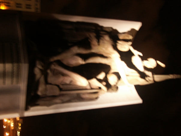 a blurry sideways photograph of some type of sculpture or artwork on a paper.
