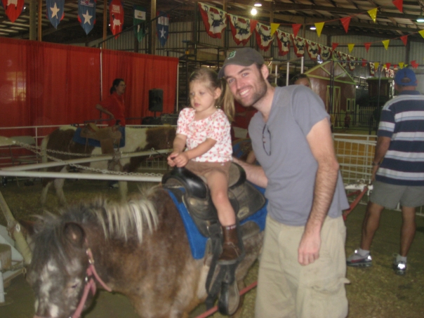 It must be the little girl's birthday. Wow i wish i had a pony. That is the coolest dad evar!!