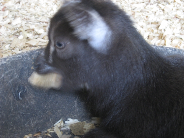 A cute, friendly goat that children can play with and feed at the petting zoo.