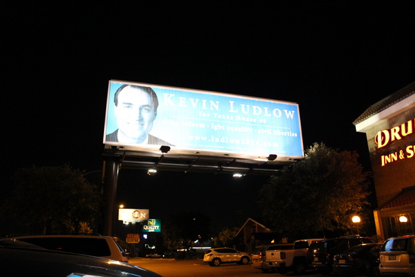 As part of the ongoing campaign for the Texas State House of Representatives in District 46, these are some shots of the billboard the campaign paid for.