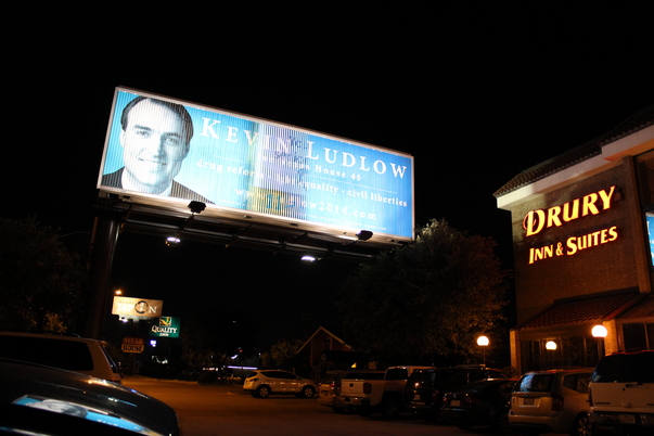 As part of the ongoing campaign for the Texas State House of Representatives in District 46, these are some shots of the billboard the campaign paid for.