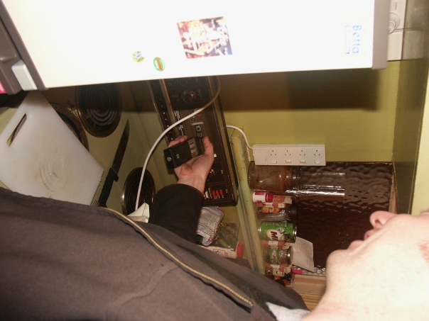 The gist of the story is that for two or three days, Marnie and I would periodically touch the battery to the leads and Nick would inquire about the noise. He eventually caught on to the fact that we were the ones doing it, but then spent another day or two trying to figure out WHAT we were actually doing. It was great fun for us.