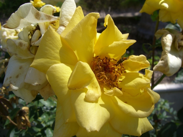 There is a picture of some yellow and white flowers.