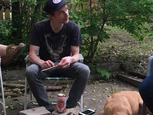 relaxing and sitting outside, having a drink, and conversing with friends.