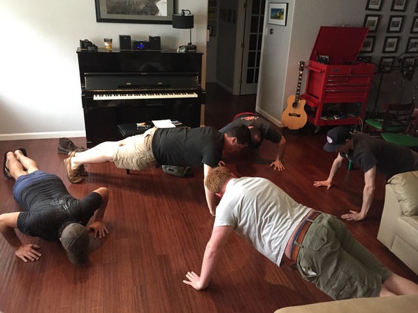 In some vain attempt to impress one another they did push-up's on the living room floor.