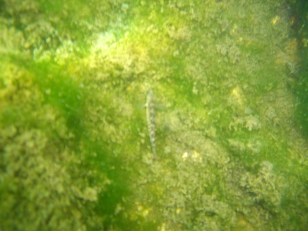 small fish of unknown species on rock in clear water