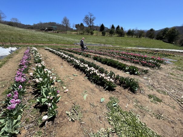 I was only along for the ride, but Kitty packed a bag of 50 tulips and Claire probably grabbed another 20 or 30.