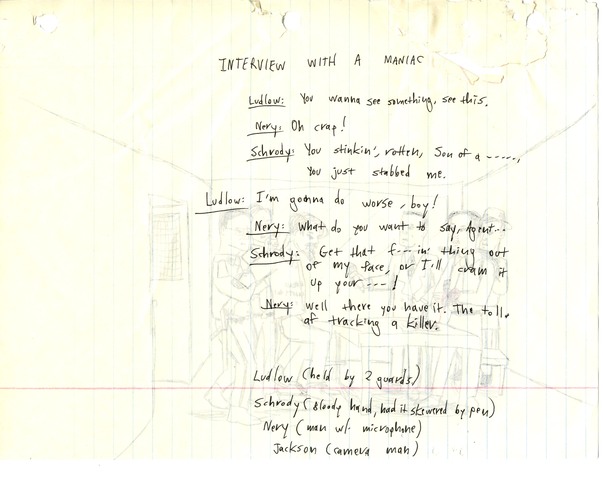 Many years ago while still in high school, I had a friend named Nick Walters. For the life of me, I have no idea how this got started, but he began drawing pictures of my friends and I going on elaborate crime and killing sprees. It wound up turning into this running production whereby he would make me a new drawing every few days and it sort of turned into a series.