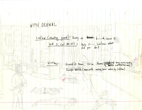 victims: Guard E. Perooz, Erica Harris (paralized from waist down - bullets severed spinal cord), Joseph Welch (man with watch, Rolex taken by Ludlow)