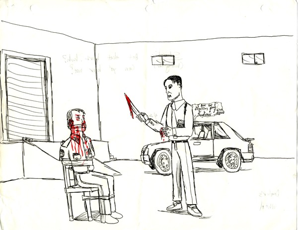 Many years ago while still in high school, I had a friend named Nick Walters. For the life of me, I have no idea how this got started, but he began drawing pictures of my friends and I going on elaborate crime and killing sprees. It wound up turning into this running production whereby he would make me a new drawing every few days and it sort of turned into a series.