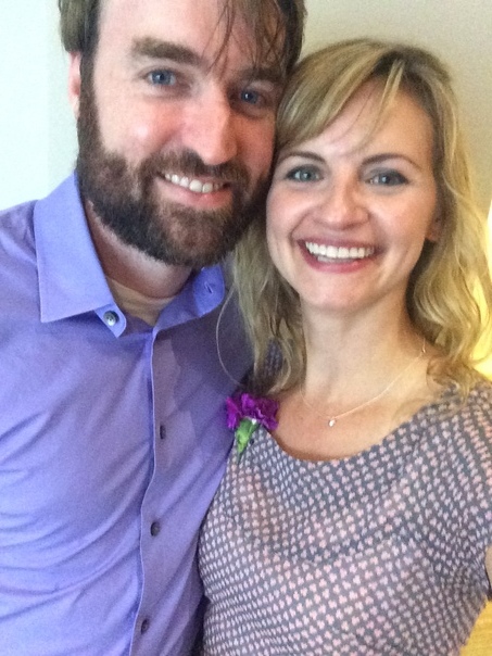 A man with a beard standing next to a beautiful woman.