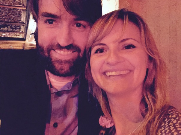 A photo of a happy couple with man who has beard and the woman with blonde hair