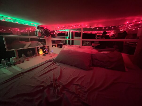 ![]() The STL Treehouse St. Louis, MO This was a pretty fun project. The Iowa room was built with a loft in it. The room wasn't especially suitable for a loft, but the owner of the house built a loft in each bedroom to create more space. It was built by hand and there was a wooden latter, literally fashioned with 2x4s, that was used to get into the bed. The room also has two giant windows in it and given Jordan's nightshift schedule, it was extremely difficult for her to get any good sleep in there during the day. One evening I quickly drew up some plans one evening, purchased everything I needed at Home Depot, and got to work on a solution. I had already ordered some blackout curtains and so I framed out the top of the loft in the same fashion one would frame out a wall. I ran the wiring into the bed area as necessary, complete with remote controlled switches, and then sealed it shut with the blackout curtains (having to cut them up rather significantly so they'd fit). Finally, there was just a hole where the ladder was and this still let quite a bit of light bleed through. So I fashioned a trap door out of MDF, added a pulley and a counter-weight, and voila, the Treehouse was born. It provided a wonderful, comfortable, and dark quarters for sleeping and I'm told helped Jordan's sleep rather significantly. |