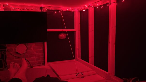 Finally, there was just a hole where the ladder was and this still let quite a bit of light bleed through. So I fashioned a trap door out of MDF, added a pulley and a counter-weight, and voila, the Treehouse was born.