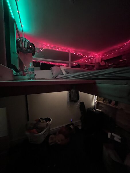 I had already ordered some blackout curtains and so I framed out the top of the loft in the same fashion one would frame out a wall. I ran the wiring into the bed area as necessary, complete with remote controlled switches, and then sealed it shut with the blackout curtains (having to cut them up rather significantly so they'd fit).