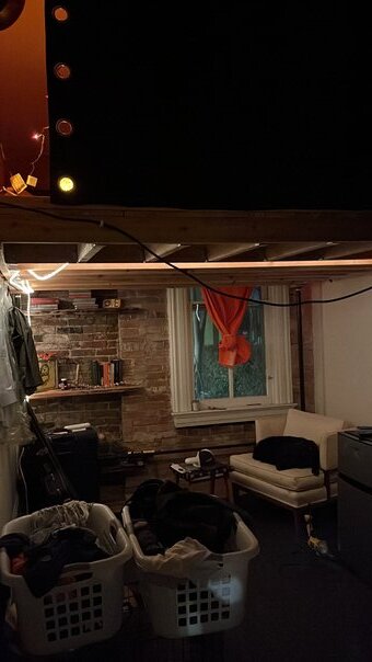 I had already ordered some blackout curtains and so I framed out the top of the loft in the same fashion one would frame out a wall. I ran the wiring into the bed area as necessary, complete with remote controlled switches, and then sealed it shut with the blackout curtains (having to cut them up rather significantly so they'd fit).