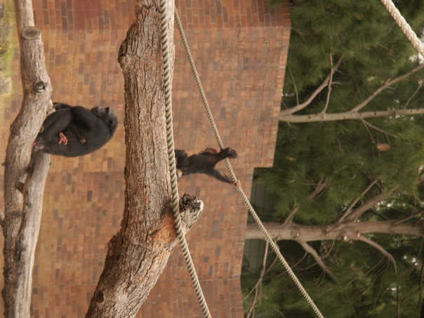 chimps testing their climbing skills