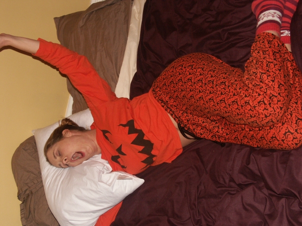 a girl waking up from a nap close to Halloween
