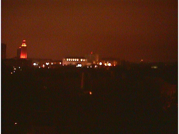 with some lights shining, it is possible to see the town. |
