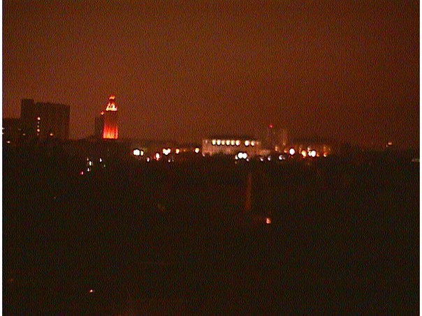 A city with bright lights is shown on picture at nighttime. |