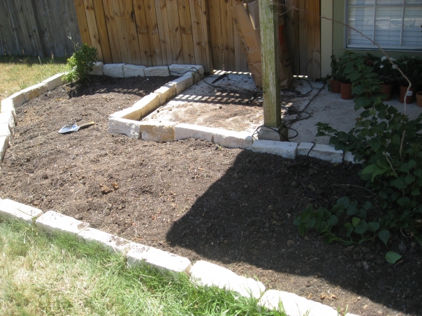 She managed to weed the entire area, purchase all of the dirt, mulch, and flowers, and plant all of the new flowers too.