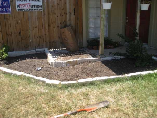 She managed to weed the entire area, purchase all of the dirt, mulch, and flowers, and plant all of the new flowers too.