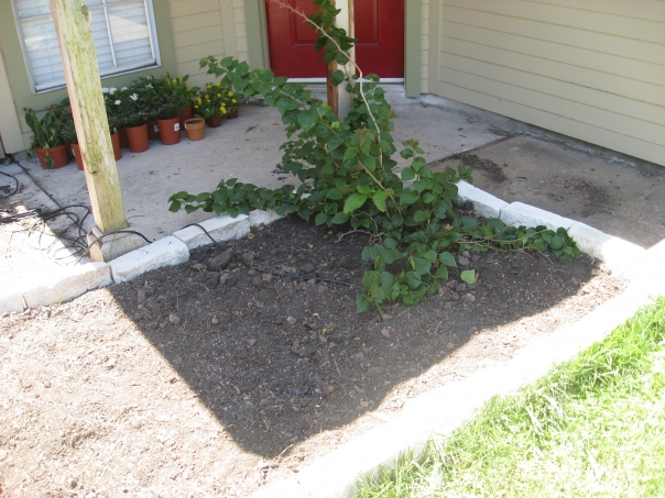 She managed to weed the entire area, purchase all of the dirt, mulch, and flowers, and plant all of the new flowers too.