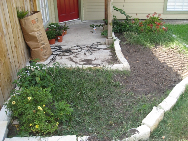 She managed to weed the entire area, purchase all of the dirt, mulch, and flowers, and plant all of the new flowers too.